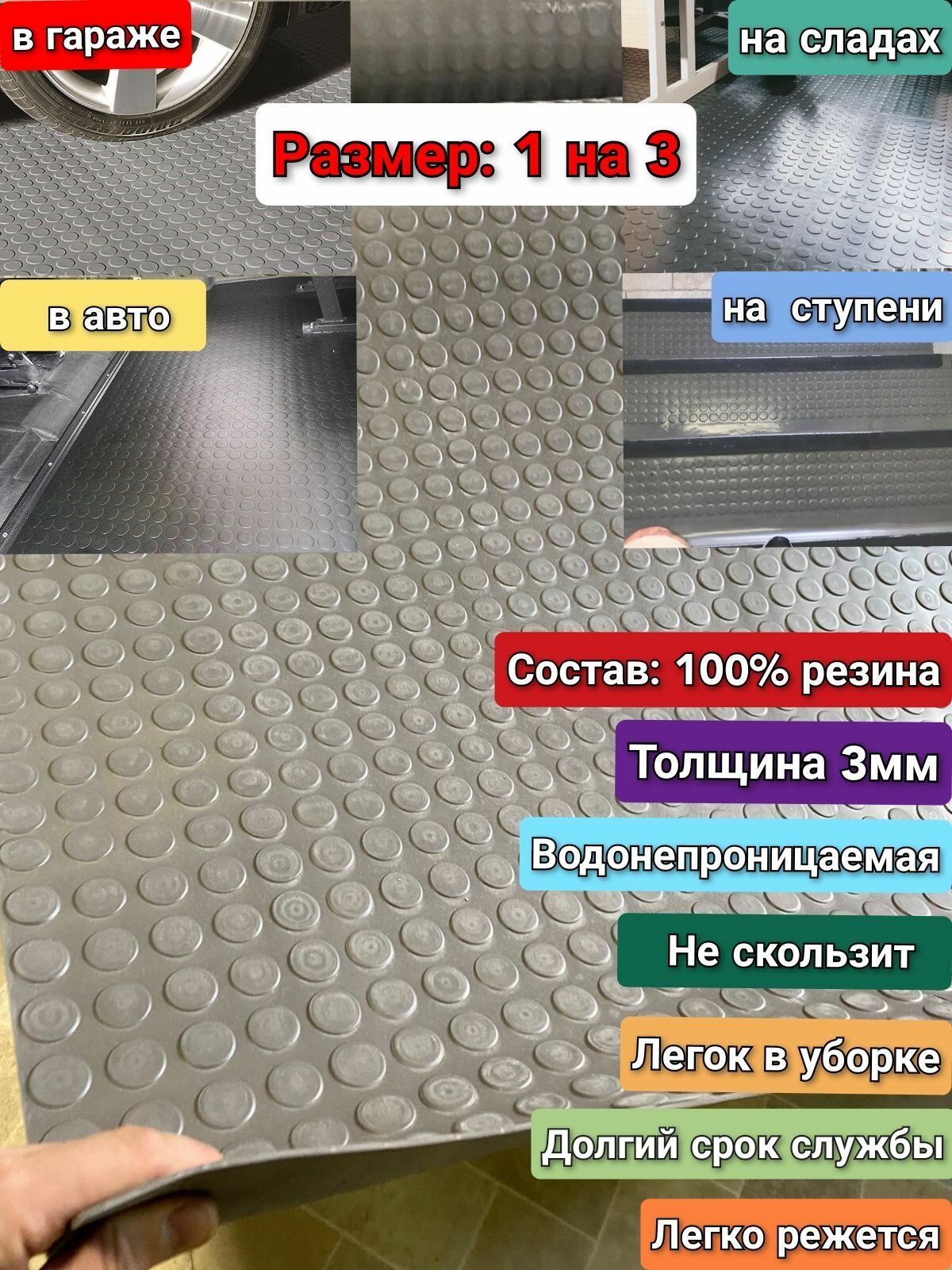 Отзывы на Резиновое покрытие напольное в рулоне 1 х 3 (Монета,цвет серый) Резиновая дорожка для авто,гаража,ступень,для лифта