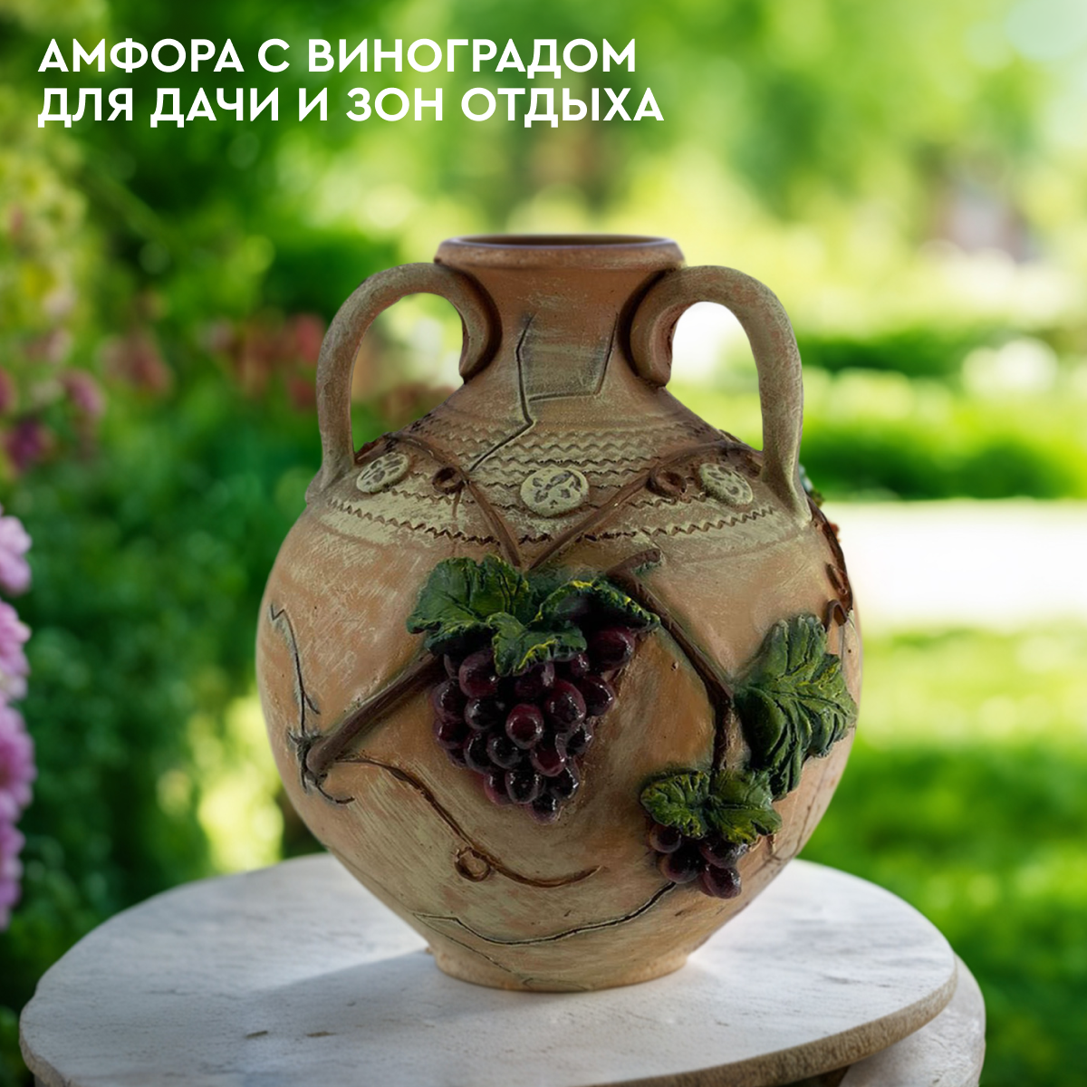 Садовая фигурка для дачи, сада и огорода на газон 'Амфора с виноградом кашпо 27x23x26 см'. информация: