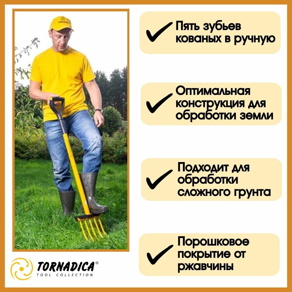 Вилы садово-огородные, 5-рогие, металлический черенок, ручка, TORNADICA