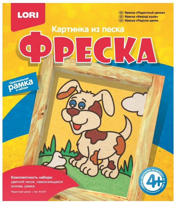 Радостный щенок, картина-фреска из песка лори Кп-001 информация: