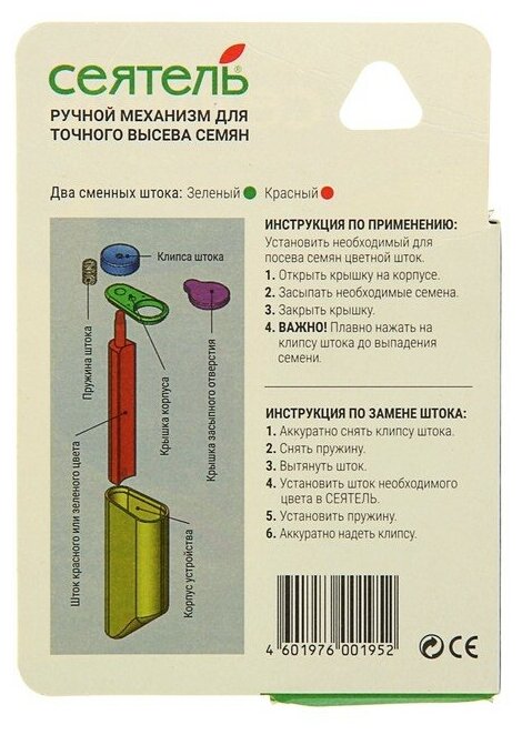 Ручной механизм для точного высева семян Сеятель два сменных штока (зелёный + красный)