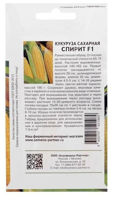 Семена Кукуруза сахарная "Спирит", 3 г информация:
