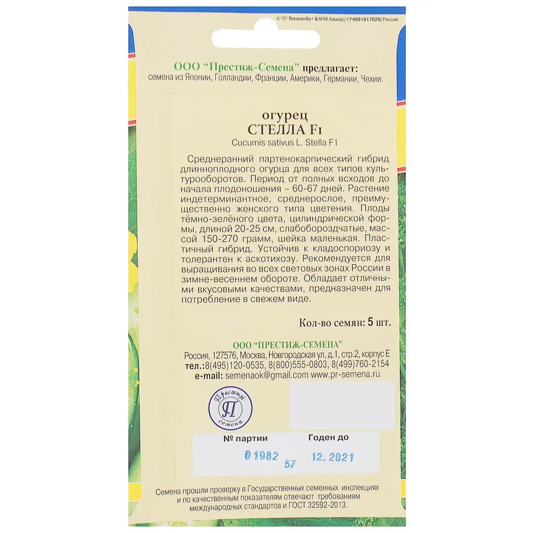 Семена Огурец Стелла F1 Престиж семена информация: