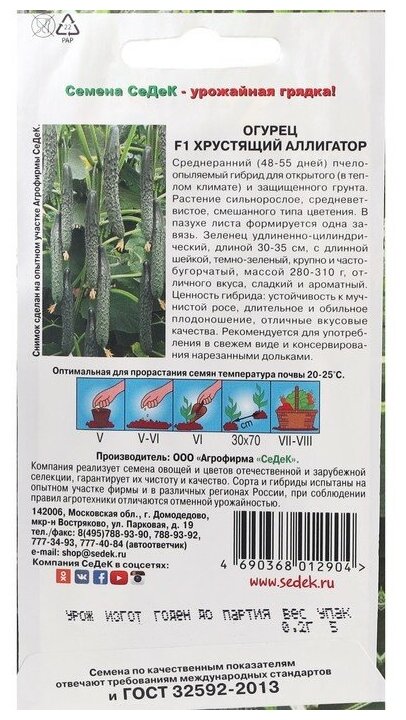 Семена Огурец "Хрустящий аллигатор "F1 0.2 г информация: