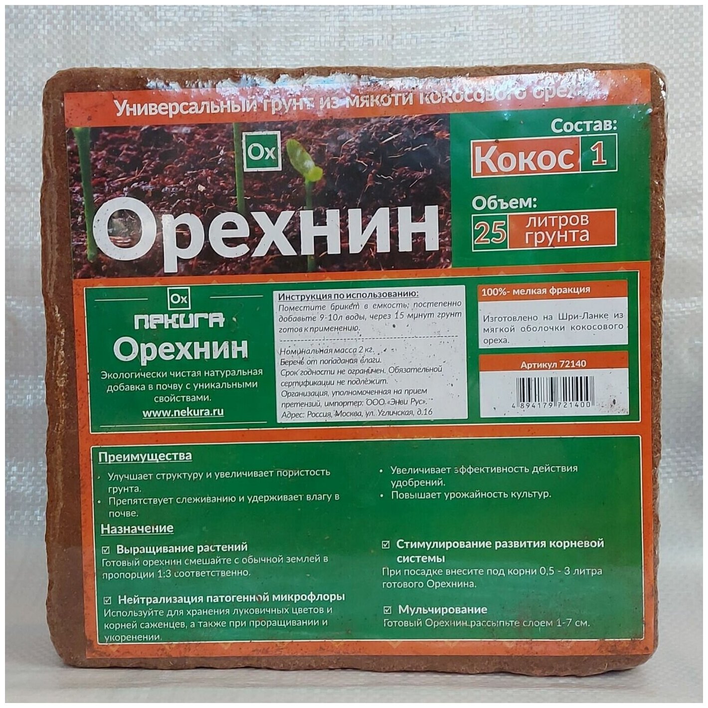Кокосовый субстрат NEKURA Орехнин-1 брикет, 25 л