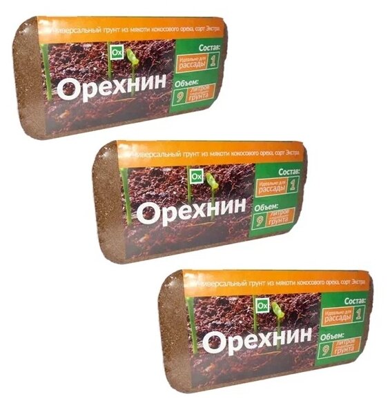 Кокосовый субстрат Орехнин брикет, 3 шт по 9 л информация:
