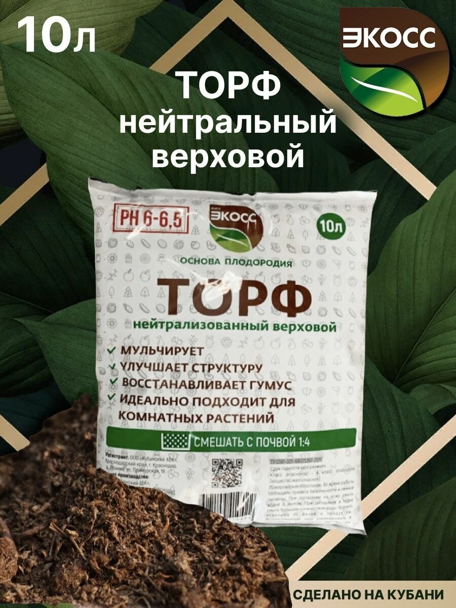 Торф нейтралный экосс, мешок 10л информация: