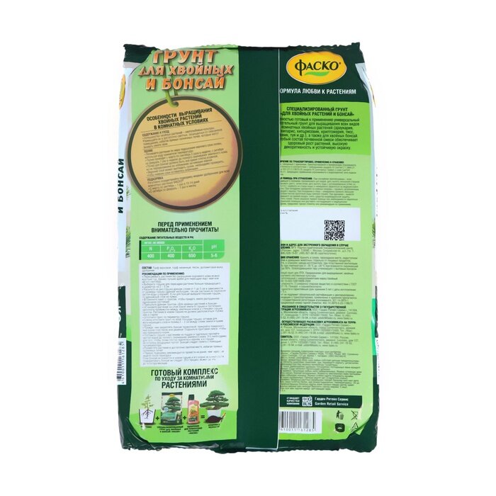 | Дополнительная информация | Почвогрунт для хвойных растений и бонсай фаско 5л |