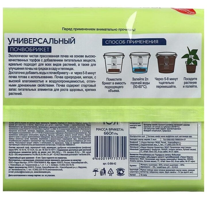 Универсальный почвобрикет БиоМастер УП000010028 информация: