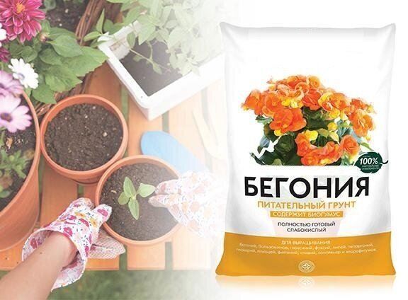 Отзывы на Питательный грунт "Бегония" 5 шт по 2.5 л, слабокислый, рыхлый. Готовый субстрат применяется для выращивания цветочных культур на даче, в огороде, на садовом участке