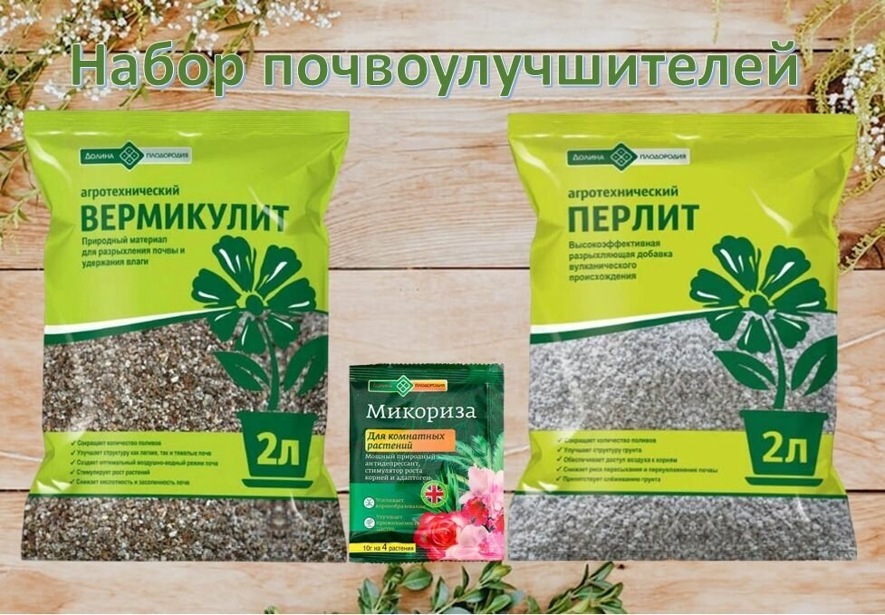 10 цен на Почвоулучшители Долина плодородия набор: перлит 2л, вермикулит 2л, микориза 10 г,