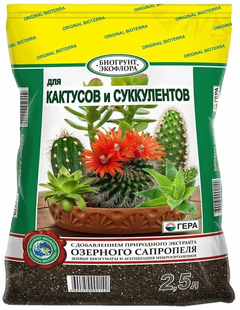 Биогрунт с сапропелем для кактусов и суккулентов Гера экофлора, 4шт по 2,5л.