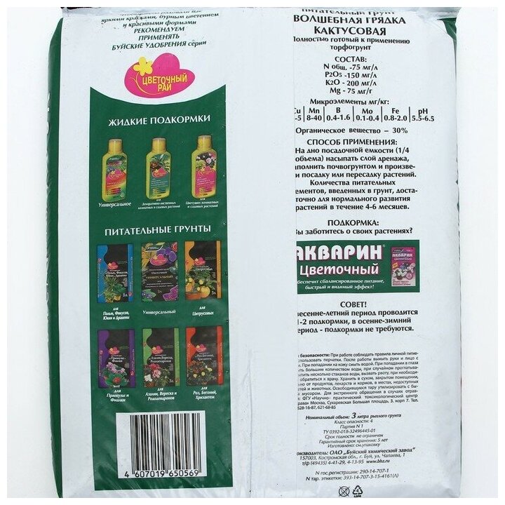 Грунт Буйские удобрения Цветочный рай для кактусов и суккулентов
