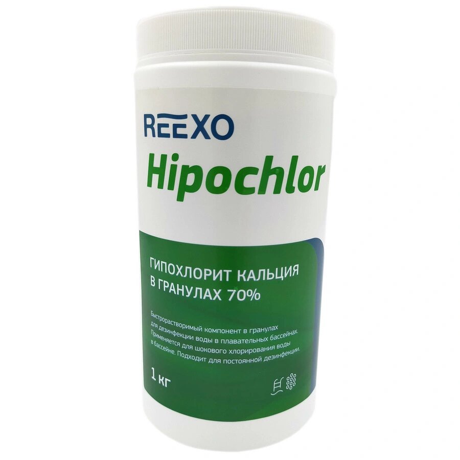 Быстрорастворимый гипохлорит кальция Reexo Hipochlor в гранулах, с 70% активного хлора, 1 кг, цена - за 1 банка информация: