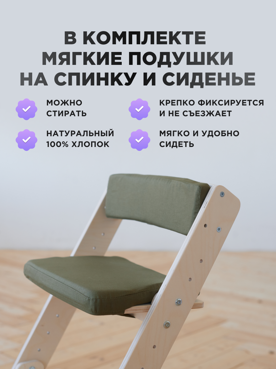 Растущий Стул детский для школьника Klikkin и подушки Хаки информация: