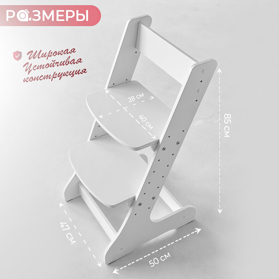 Растущий стул для детей FORLIKE белый, с подлокотниками, деревянный регулируемый стул
