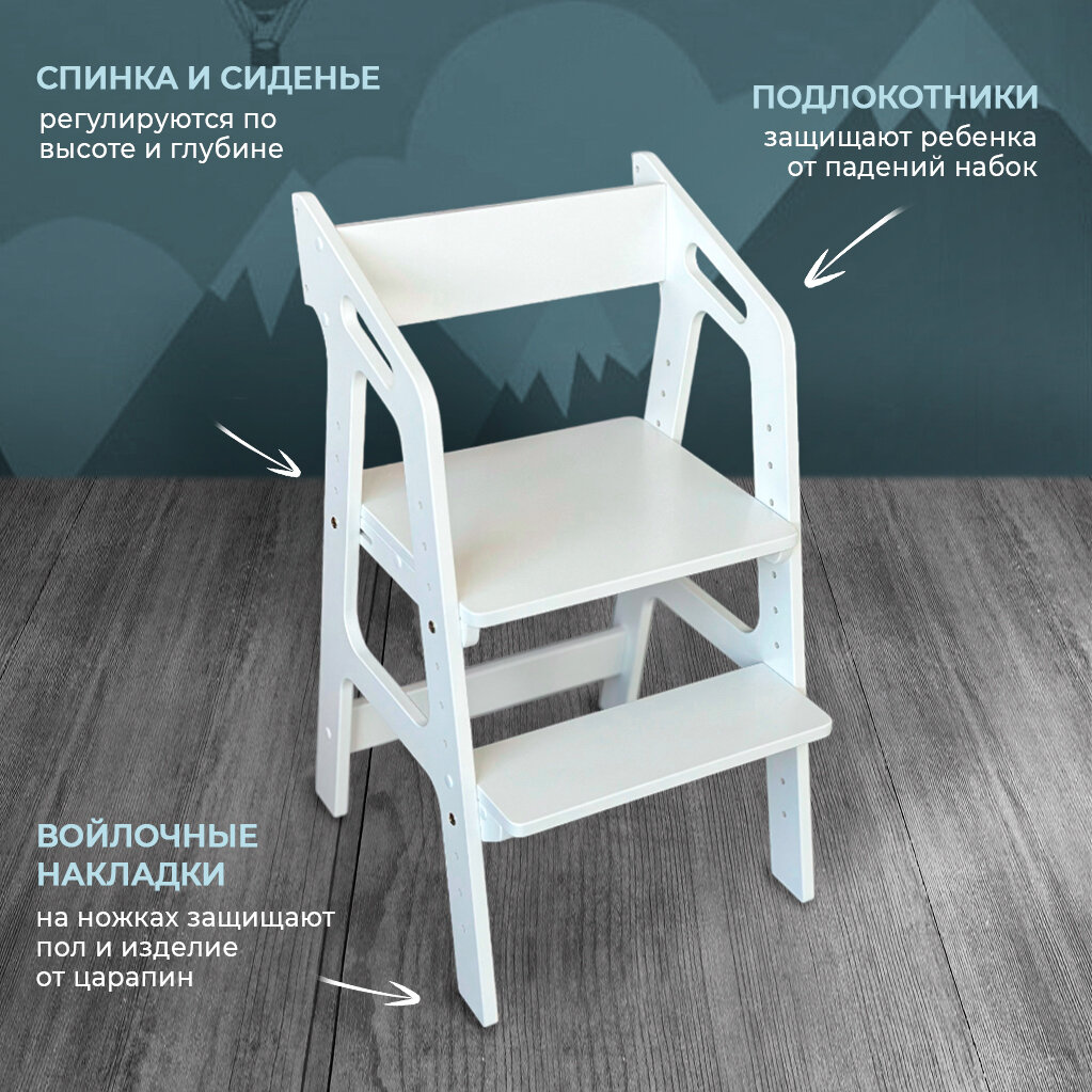 Растущий стул для детей FORLIKE белый, с подлокотниками, деревянный регулируемый стул