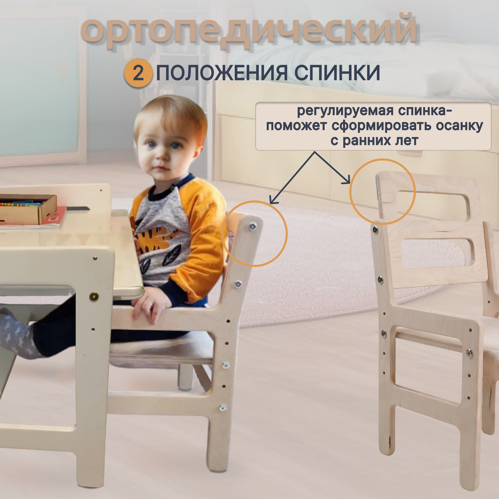 Растущий стул для детей FORLIKE белый, с подлокотниками, деревянный регулируемый стул