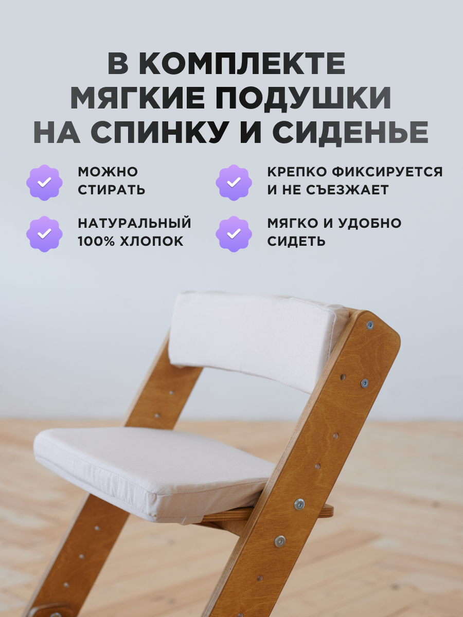 Растущий Стул детский для школьника Klikkin Ясень и подушки Бежевые информация: