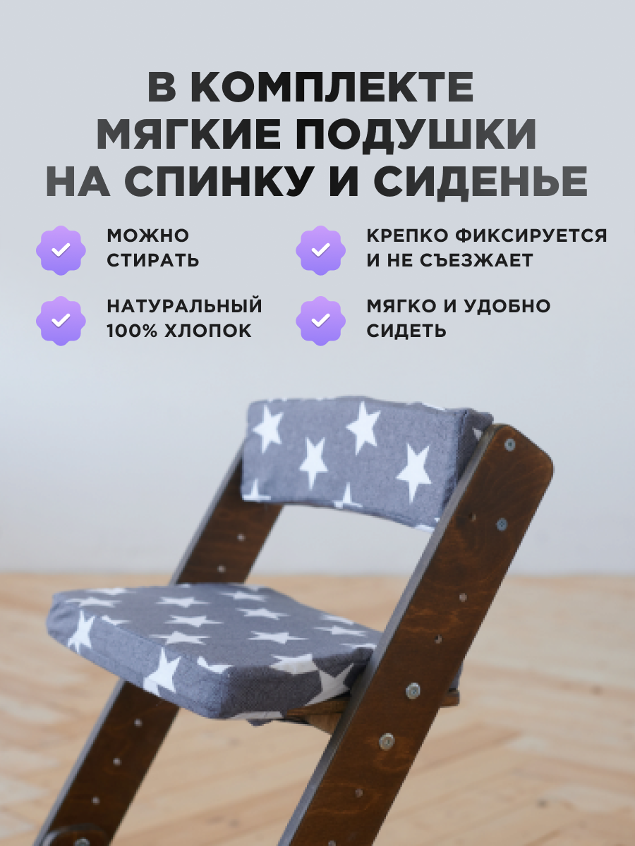 Растущий Стул детский для школьника Klikkin орех и подушки Серая звезда 3 190 ₽