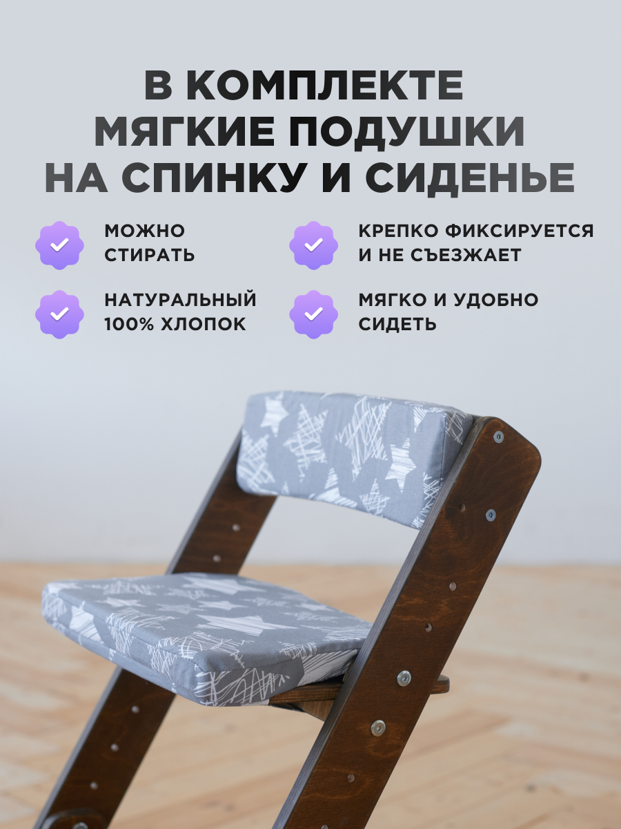 Отзывы на Растущий Стул детский для школьника Klikkin орех и подушки Серая звезда
