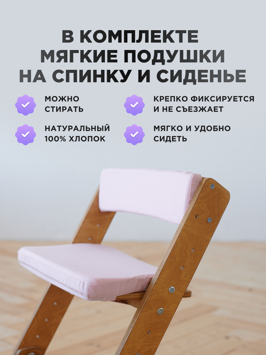 Растущий Стул детский для школьника Klikkin Ясень и подушки Розовые информация: