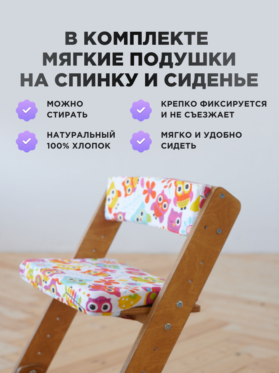 Растущий Стул детский для школьника Klikkin Ясень и подушки Совушки информация: