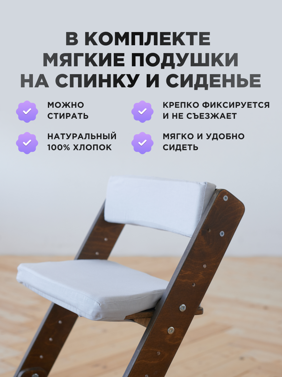 Растущий Стул детский для школьника Klikkin орех и подушки Платина информация: