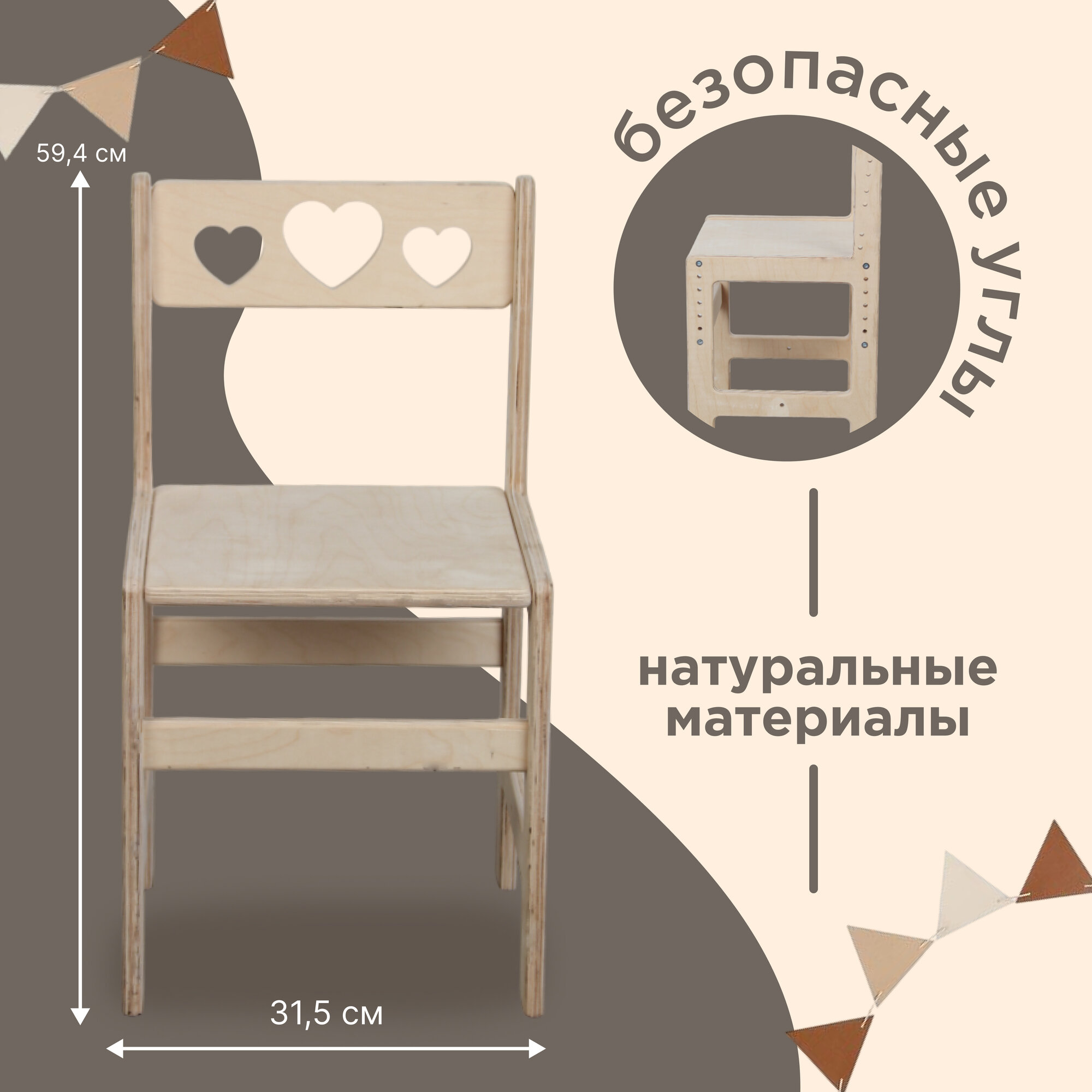 Детский растущий стул "Малыш" без шлифовки с сердечками информация: