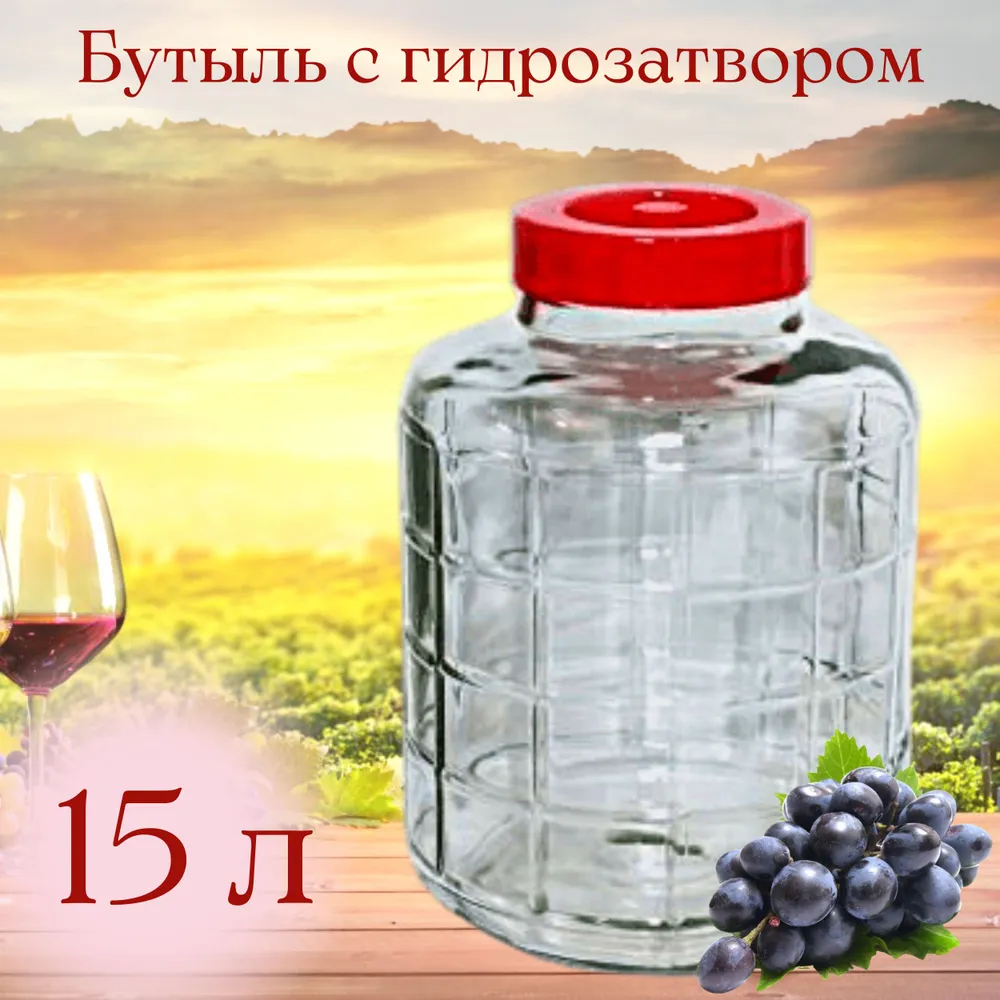 10 цен на Емкость (бутыль, банка) стеклянная для брожения (браги, вина) с крышкой-гидрозатвором 15 л