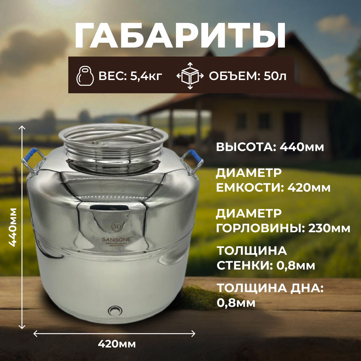 Бидон (фляга) 50 л из нержавеющей стали "Люкс" информация: