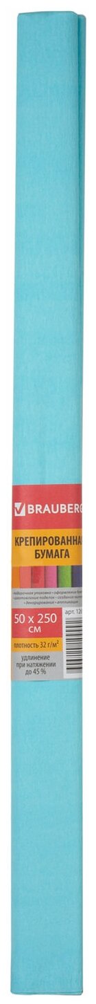 Цветная бумага крепированная плотная в рулоне BRAUBERG, 50х250 см, 1 л., 32 г/м2 1 л. , голубой