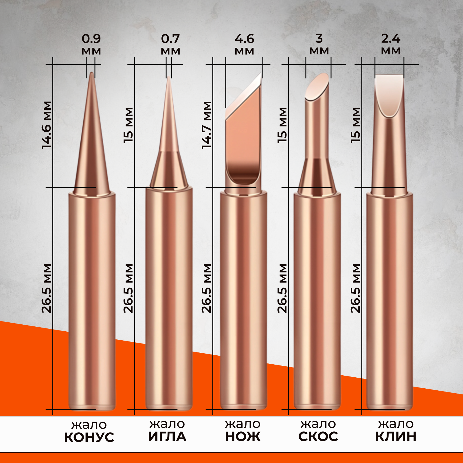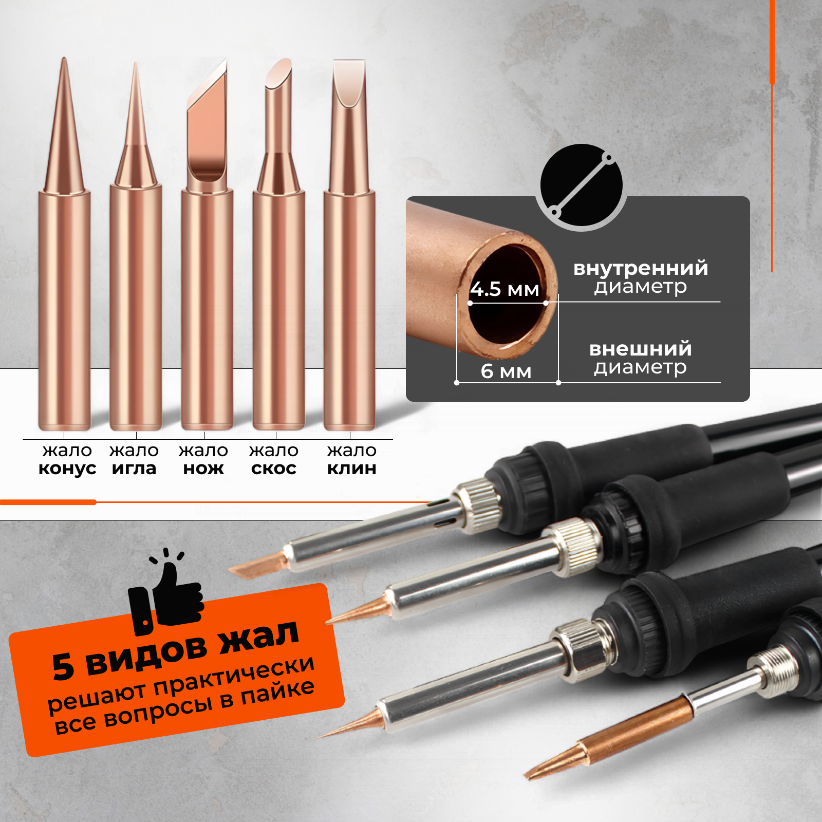10 цен на Жало для паяльника, набор медных жал, 5шт