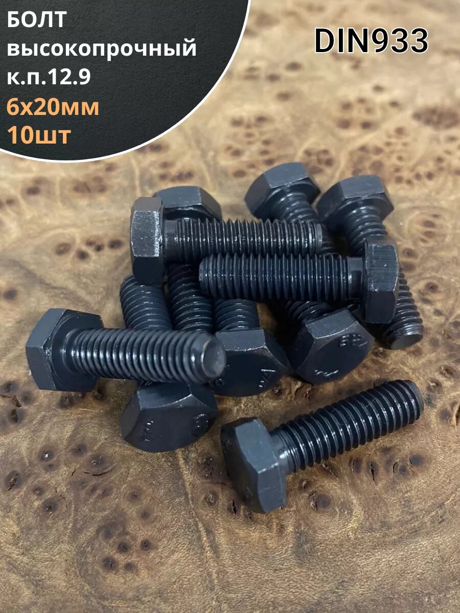 Болт М6х20 мм, DIN933, высокопрочный к.п. 12.9, 10шт. информация:
