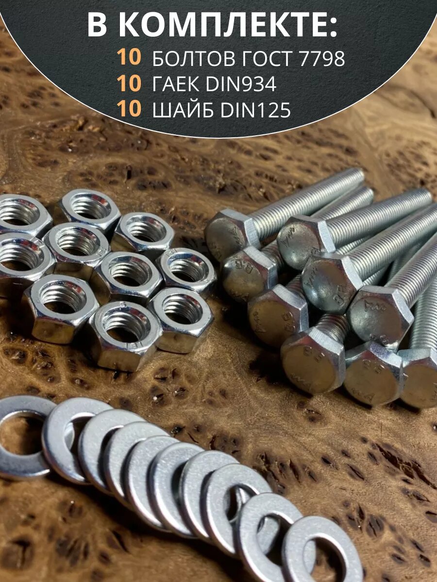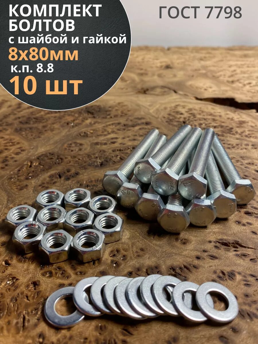 10 цен на Болт 8х80 мм с гайкой и шайбой ОЦ Гост 7798 к.п.8.8 (10 шт)