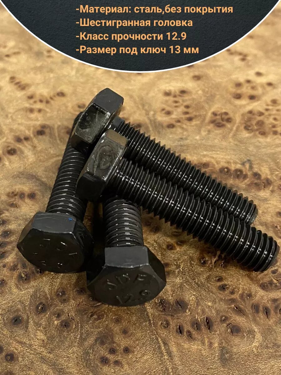 10 цен на Болт М8х35 мм, DIN933, высокопрочный к.п. 12.9, 50шт.