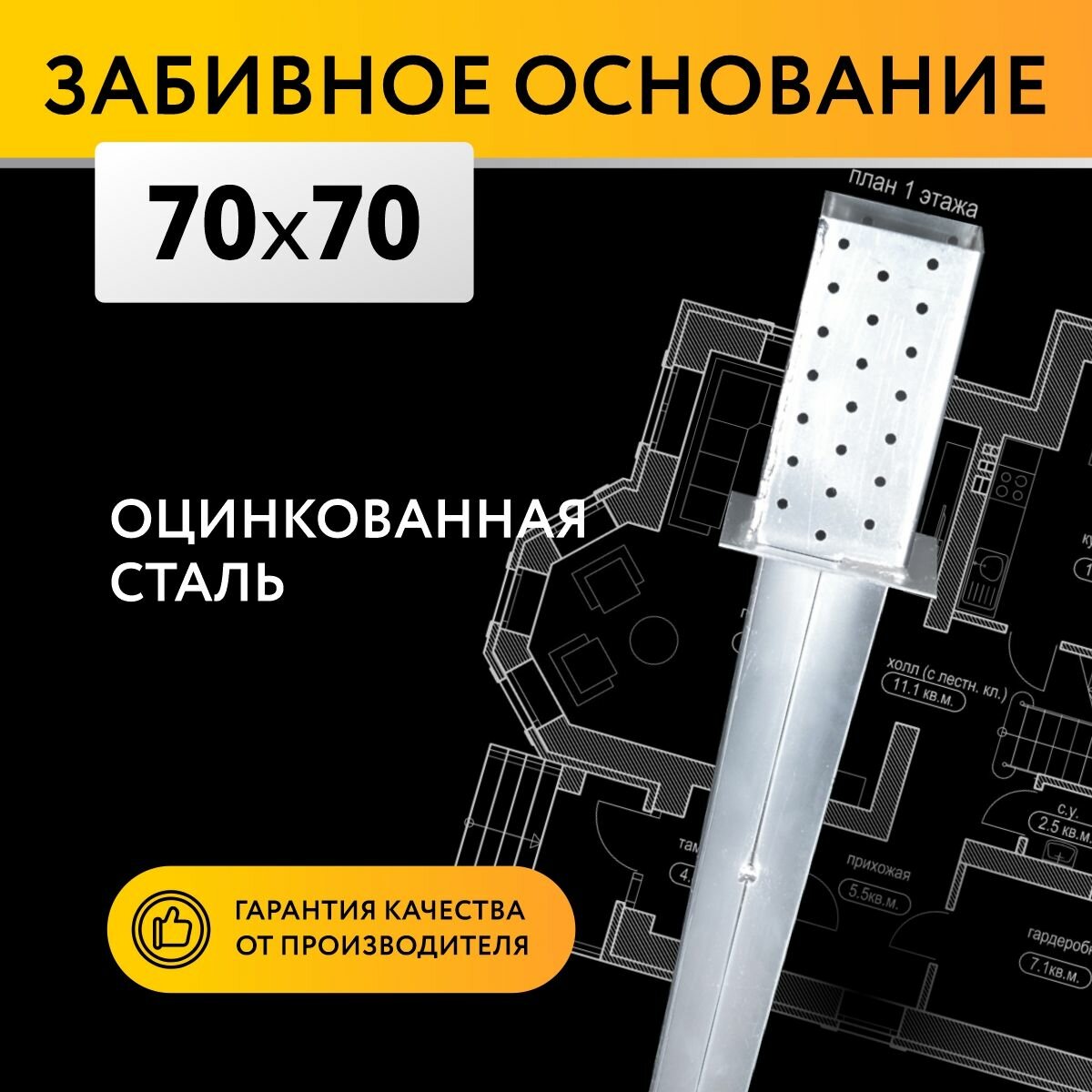 Отзывы на Забивное основание столба 70х70х150 900 мм, крепеж для стоек в землю