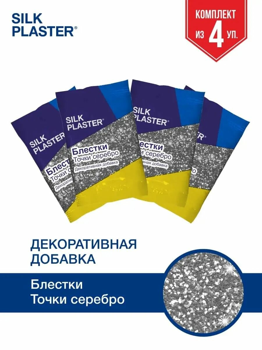 Добавка для жидких обоев, блестки точка серебро - комплект 4 шт информация: