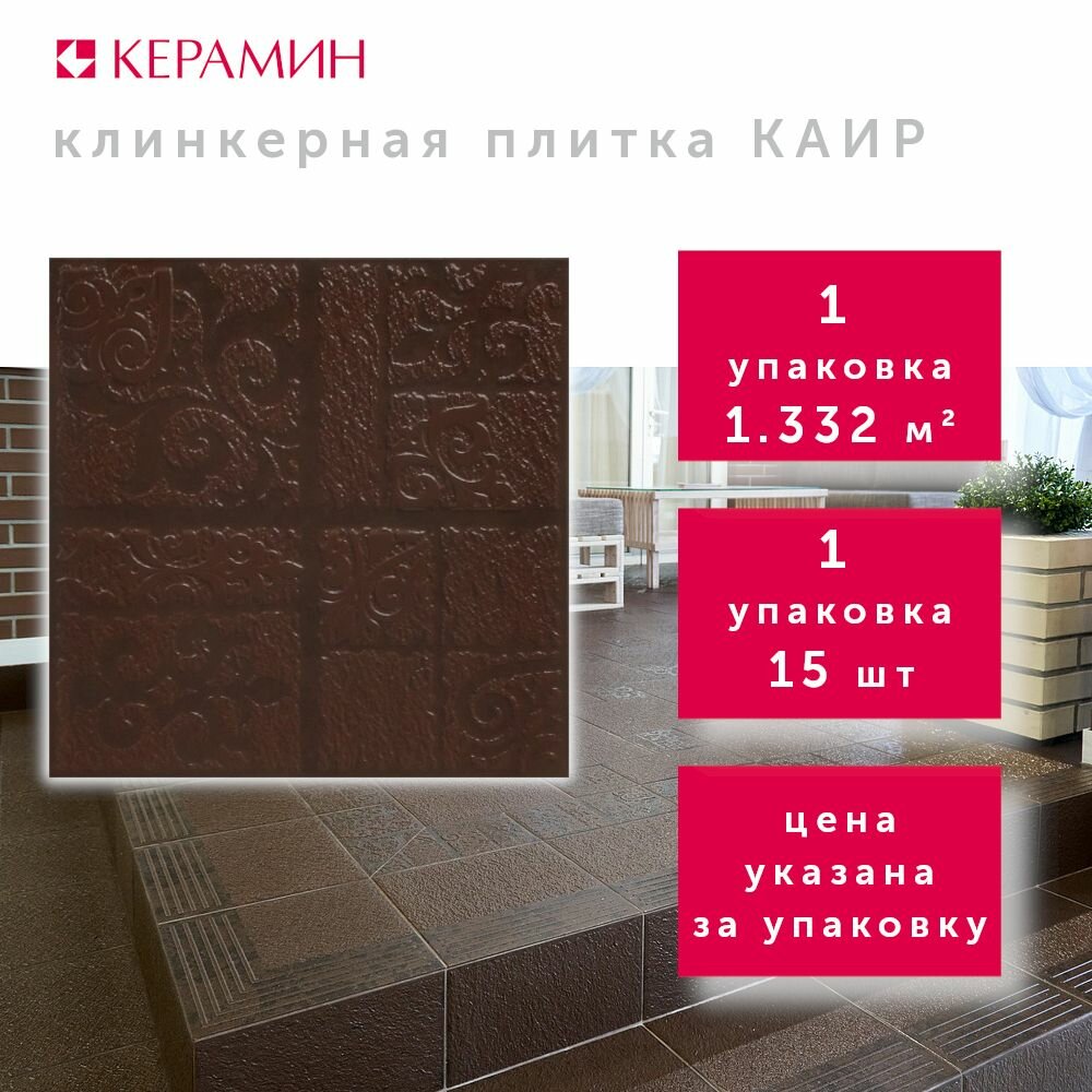 10 цен на Плитка клинкерная Керамин Каир 4Д коричневый 29.8x29.8 см (15 шт 1.332 м2)
