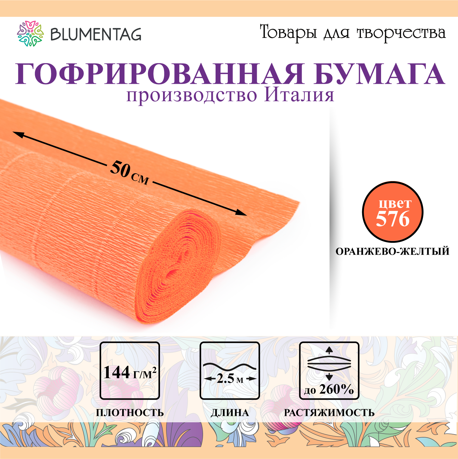 Blumentag Гофрированная бумага GOF-180 50 см х 2.5 м 180 г/м2 576 оранжево-желтый информация: