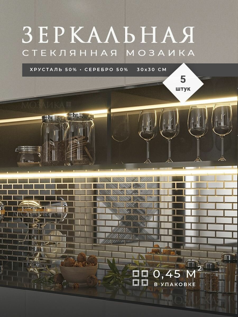 Зеркальная плитка мозаика на стену 5 шт 30х30см (0.45 м.кв) / Зеркальные панели для кухни и ванной информация: