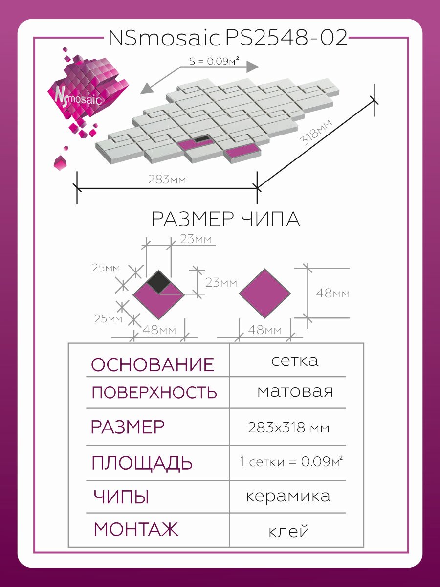 Мозаика керамическая NS mosaic PS2548-02 283х318 чип 48х48-25х25 уп 5 шт информация: