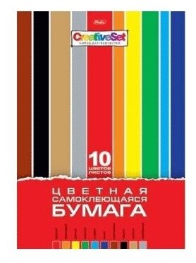 Цветная бумага самоклеящаяся Creative Set Hatber, A4, 10 л., 10 цв. 1 наборов в уп. 10 л.