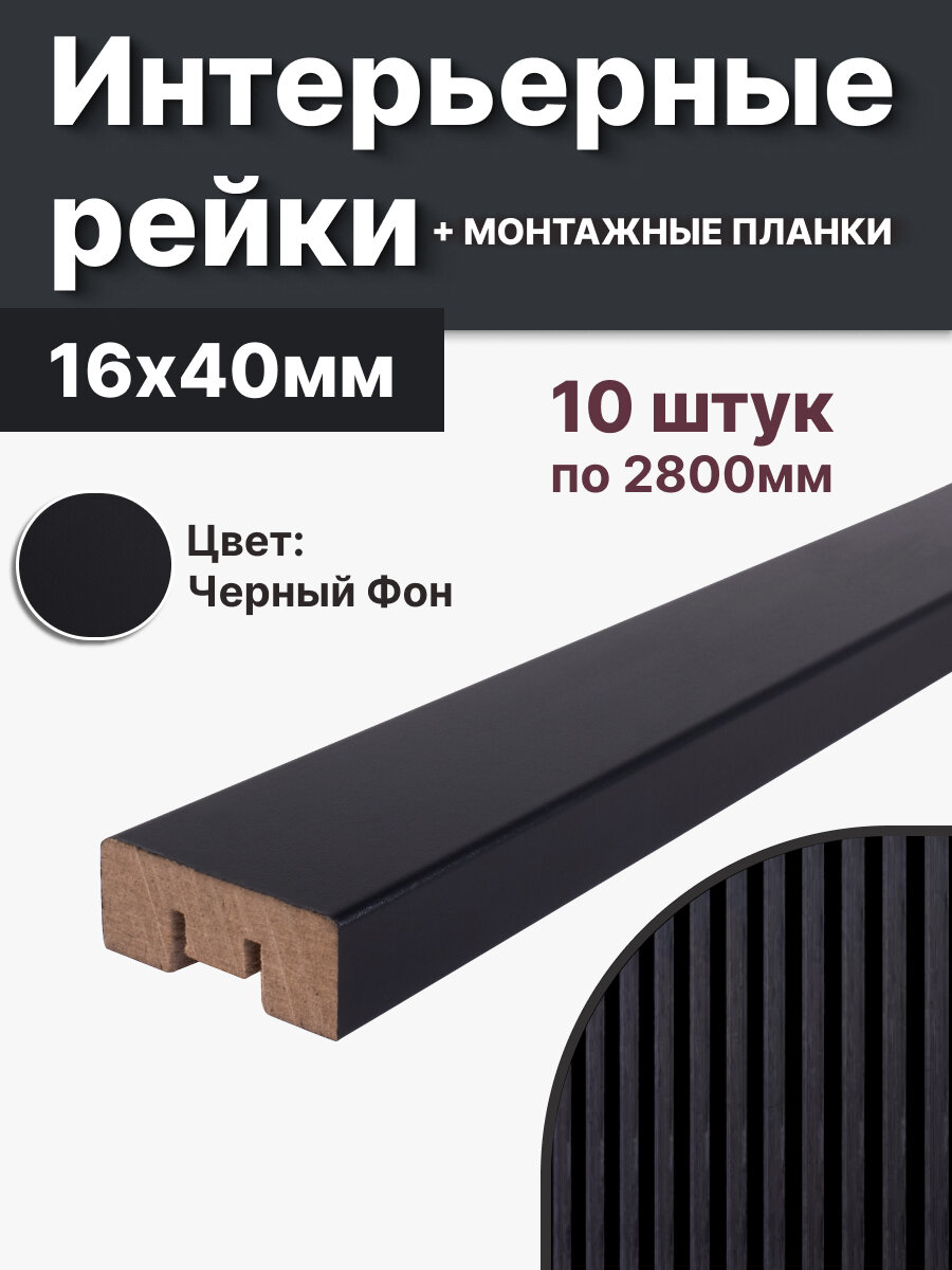 Рейка интерьерная МДФ для стен и потолков, с монтажной планкой, 40*16*2800мм, 10 штук, цвет Черный информация: