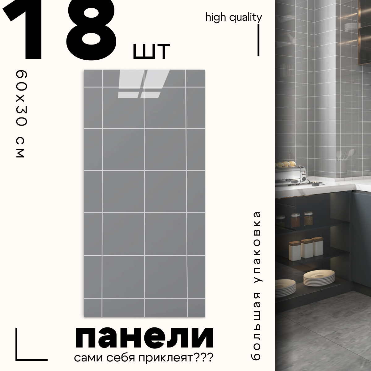 Отзывы на Самоклеящиеся панели стеновые "Катри", Серая квадратная плитка, 30x60см, 18шт, 3.24м2