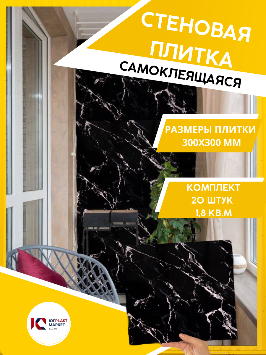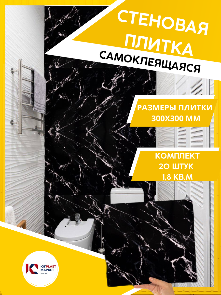 ЮГPLASTMARKET Плитка Крестолла Блек Самоклеящиеся панели для стен ПВХ для декора 30х30 см, 20шт. UPMP ZM информация: