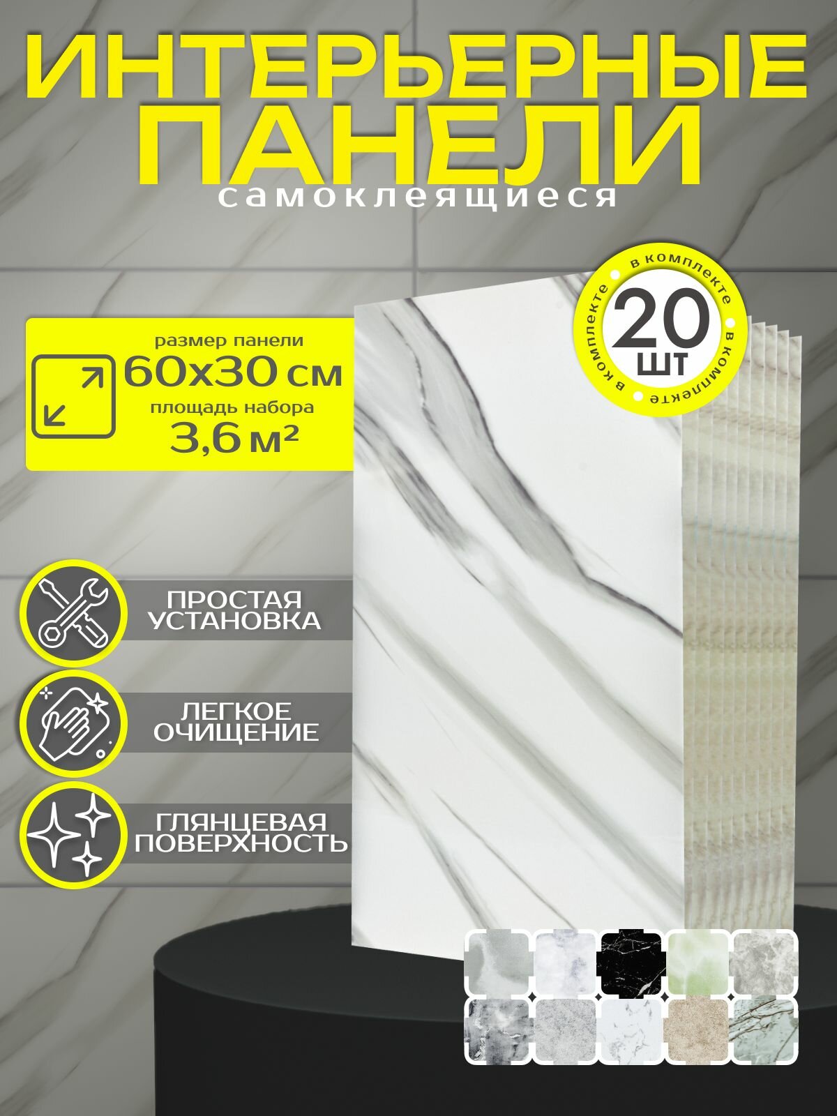 3d панели самоклеющиеся. Стеновая панель мрамор самоклеящаяся белая - панели 30х60 см ( комплект 10 шт), цвет: 027 1 141 ₽
