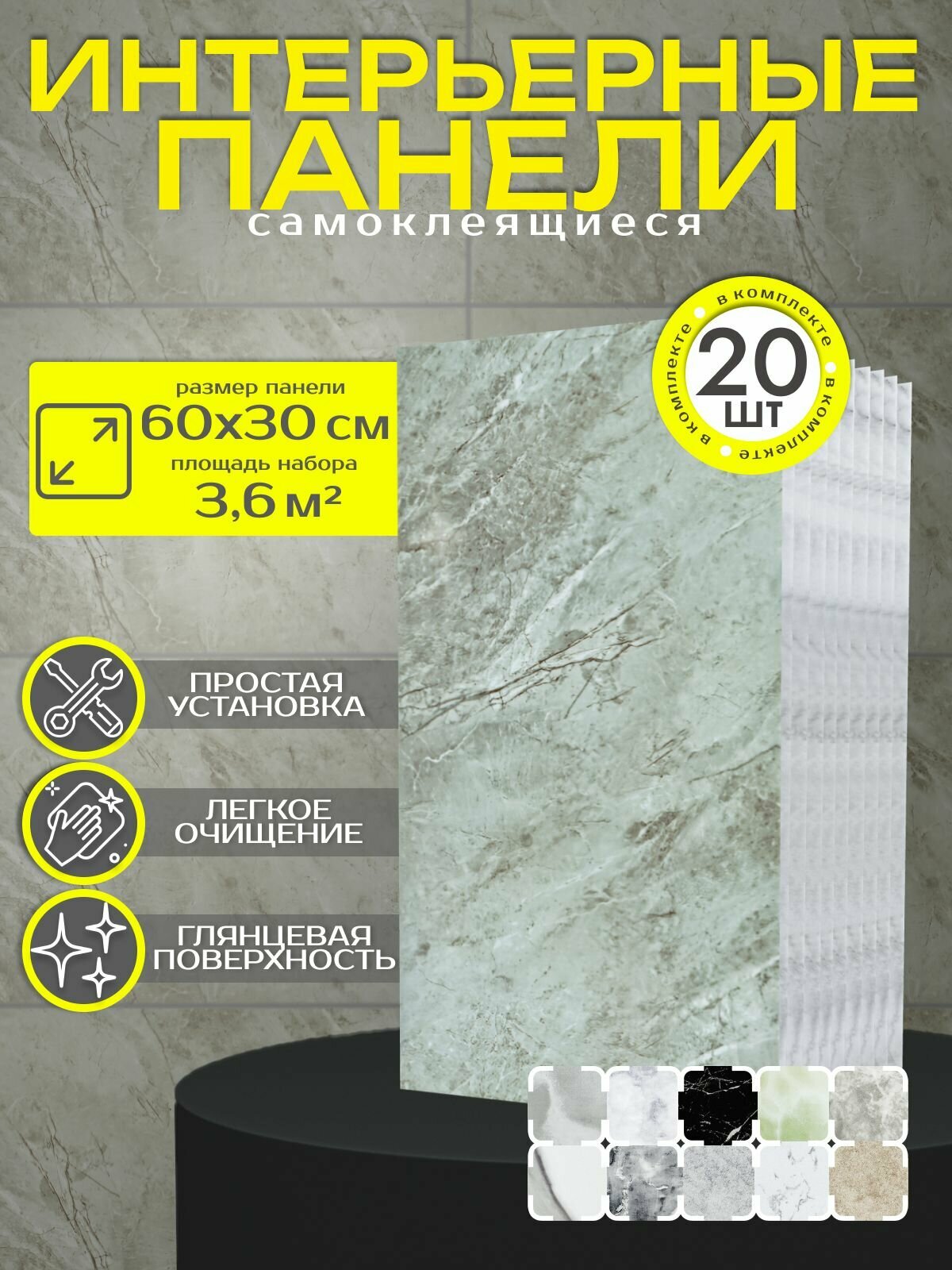 3d панели для стен. Самоклеющаяся плитка на стену, для отделки стен под мрамор - панели 30х60 см ( комплект 10 шт), цвет: 037 1 227 ₽