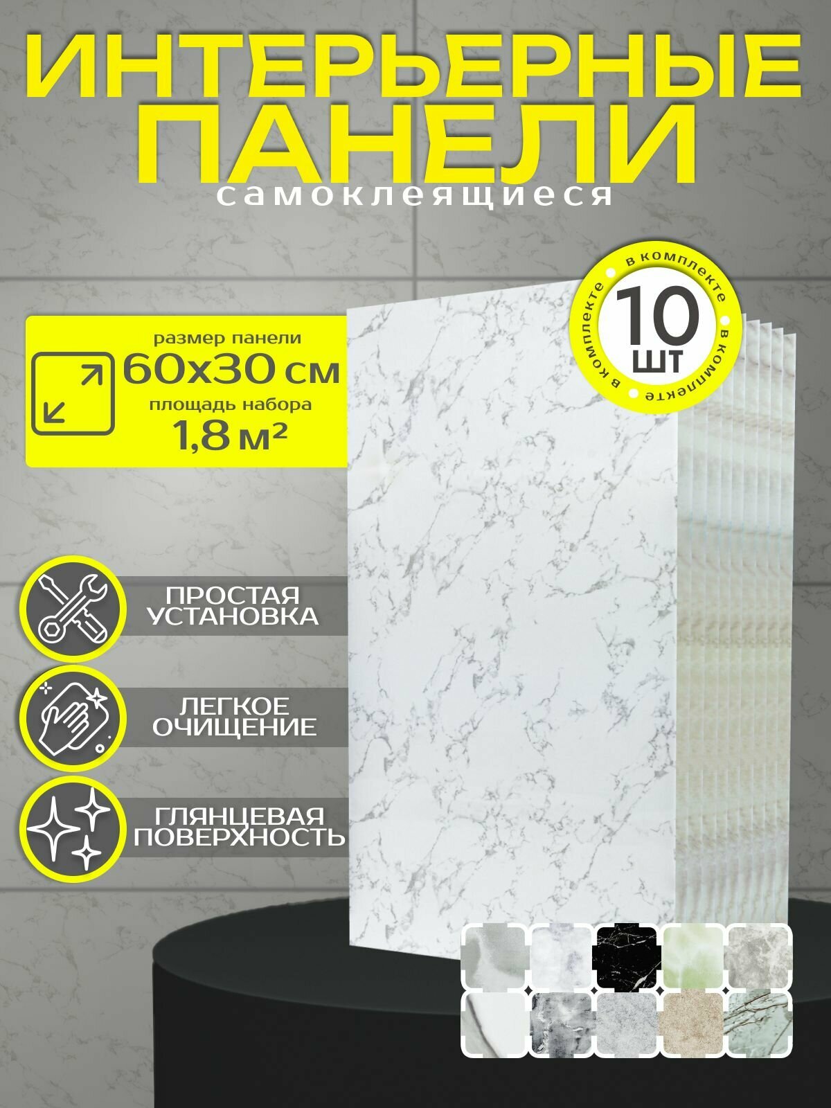 10 цен на 3d панели самоклеющиеся. Стеновая панель мрамор самоклеящаяся белая - панели 30х60 см ( комплект 10 шт), цвет: 027