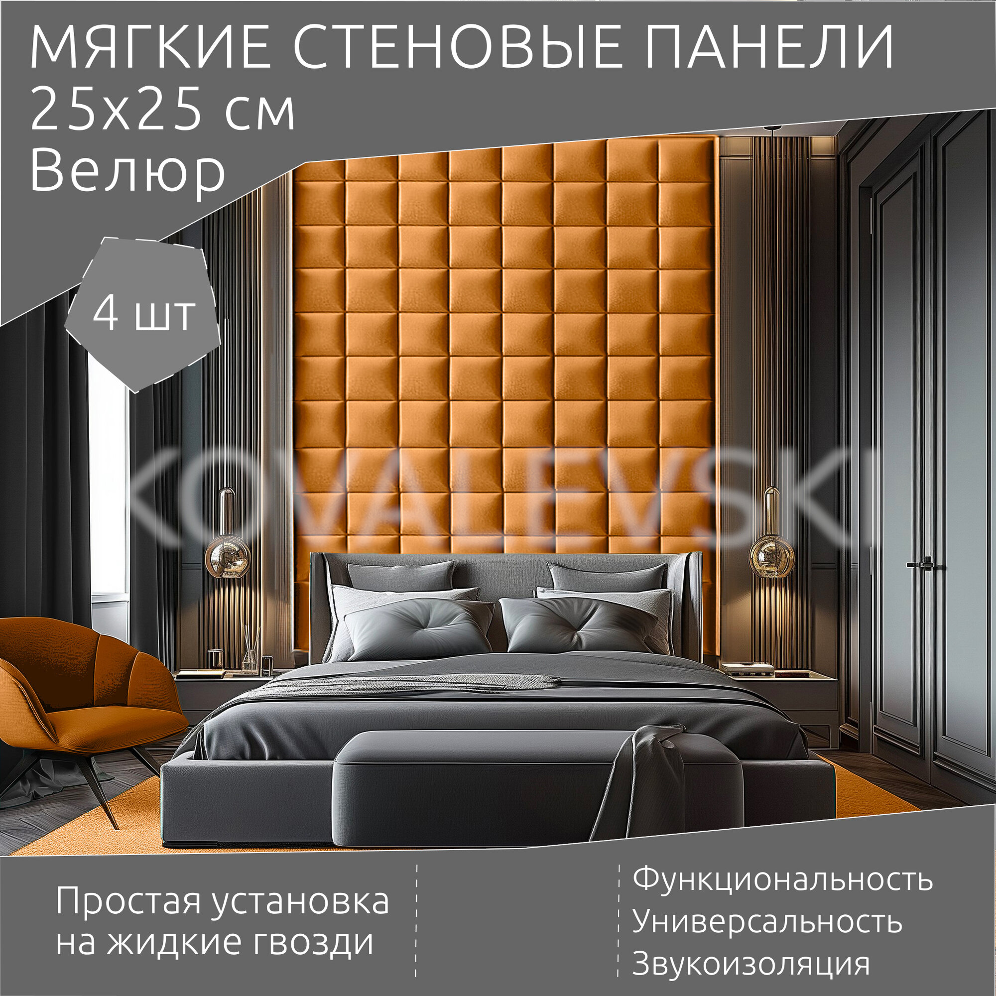 10 цен на Мягкая стеновая панель 25х25 см, 4 шт горчичная